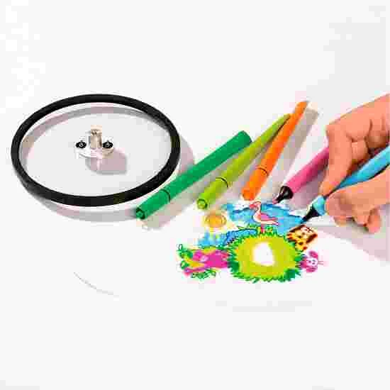 The blank effect wheel comes with two custom-cut special foils. The clear foils have an absorbent side which can be drawn on with standard felt-tip pens. You can buy these from any good specialist shop. We recommend using high-quality branded products, as the colours then have a lovely clear, vibrant appearance when projected on the wall.
