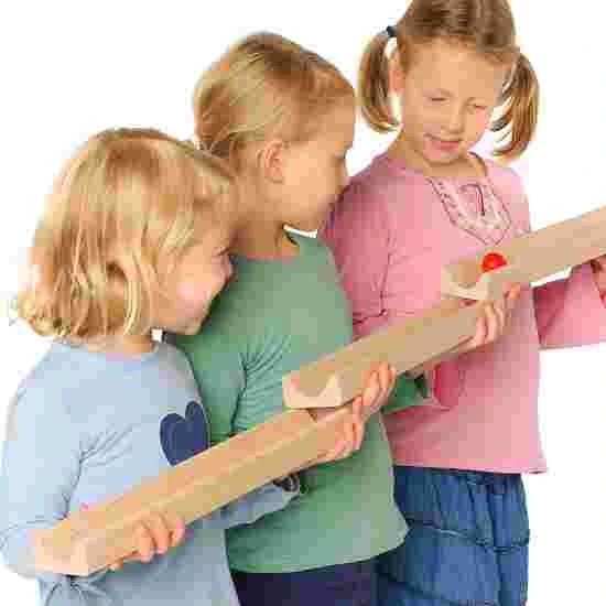 - Includes: 8 pieces of track made of natural beech wood, incl. 2 painted wooden balls, 1 set of playing instructions, 1 carry bag