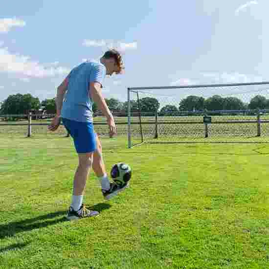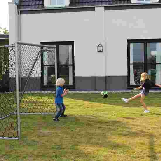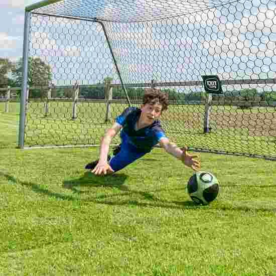 The frame of the Exit “Scala” aluminium goal is made from strong, rigid aluminium piping. The wall is 2 mm thick, guaranteeing optimal stability despite a low weight. The frame’s front surface is anodised and its back is powder coated for excellent protection. This aluminium goal is easy to put together using the connectors made from injection moulding. This black football goal features a hexagonal mesh net, which can be attached to the frame with ease using the net hooks. Ground anchors not included. These are available to order separately.
