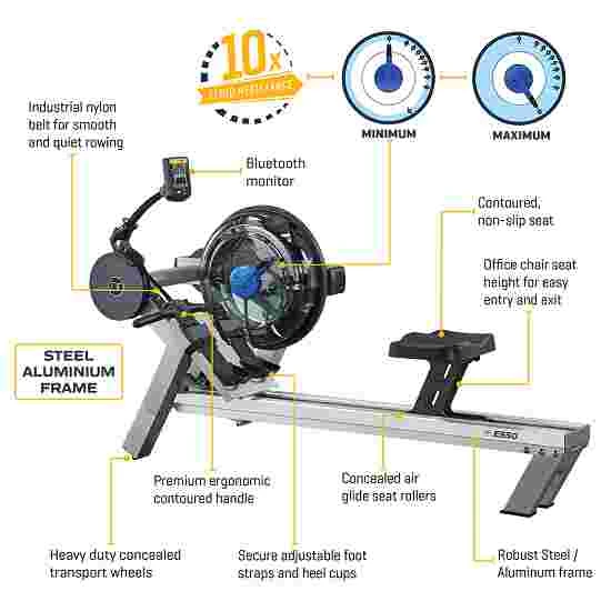 - Unique heel support: ergonomic foot position for more user comfort, quick one-touch foot size setting, feet stay in place whilst rowing