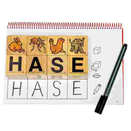The Nikitin ABC cubes consist of 26 colour illustrated wooden cubes and are perfect for learning German. Each cube features three pictures. Not sure how to say it in German? Simply turn over the cube to reveal the hint – the first letter of the German word! The set also includes German umlauts (ö, ä, ü) and the sounds au, ch, pf and sch.