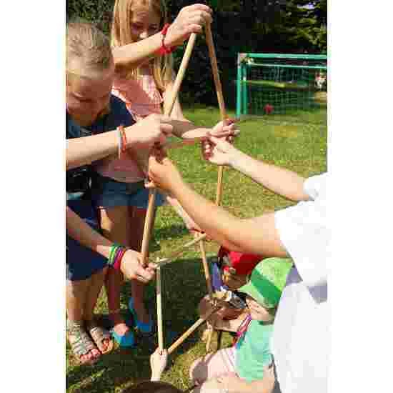 The Pedalo “Two” team games box provides many exciting game ideas for groups of 2 to 16 people, and ideally complements the “One” team games box. Games such as Thought Transfer, Sorting System, Change of Scenery or Sunrise require team spirit, communication skills, dexterity, concentration and creativity. Whether in small or larger groups, enjoying to work as a team is the top priority of the games. Only those who can communicate effectively within the group, coordinate their actions, assume as well as delegate responsibilities and make a conscious effort to fit in will be successful with the Pedalo “Two” team games. Participants learn that it is not only easier to solve problems together, but also much more fun than racking your brain by yourself. The game materials come in a practical wooden box with lid, including detailed instructions (in German). The Pedalo “Two” team games box can be used by virtually anyone: from sports teams, school classes and nursery groups to company departments and team building events for managers.