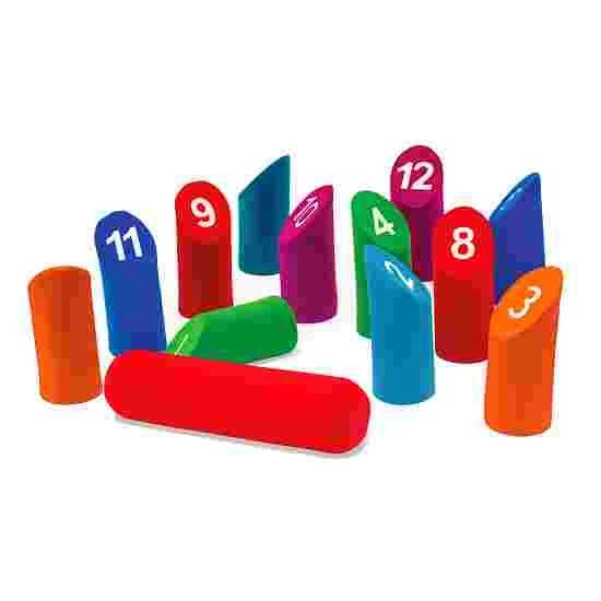 Unlike conventional skittles, the cones made of natural rubber have to be knocked over with a throwing stick. Skittle size: øxH: 5×11.5 cm. Incl. practical transport bag.