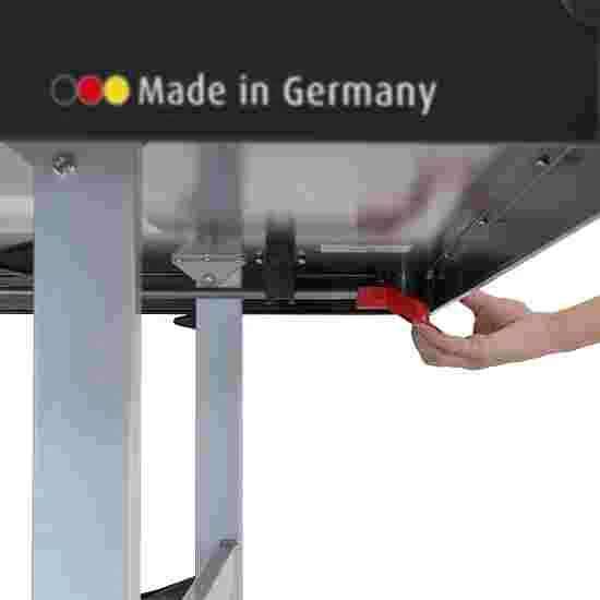 The Sponeta “S 5-72 i / S 5-73 i” table tennis table is a popular table for indoor use. With its 22-mm-thick, multi-coated chipboard top, the table is exceptionally robust and suitable for competitive games. The table tennis table also has a 50-mm-wide frame profile and a compact base with square tubing which makes it very sturdy. Thanks to the height adjustment on the outside legs, the table adjusts to unevenness on the floor of up to 30 mm – the “S 5-72 i / S 5-73 i” table will always stand securely.