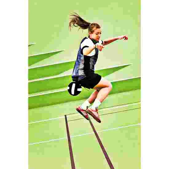 Bumball is a fun ball game involving two opposing teams. Players pass the ball to one another but are only allowed to catch the ball with the hook-and-loop pad on their chest or bottom. The set includes 12 hook-and-loop pads (6 red and 6 blue) made of 100% polyester, and 2 balls (also made of 100% polyester) with a diameter of 17 cm and weighing 200 g. Incl. practical carry bag.