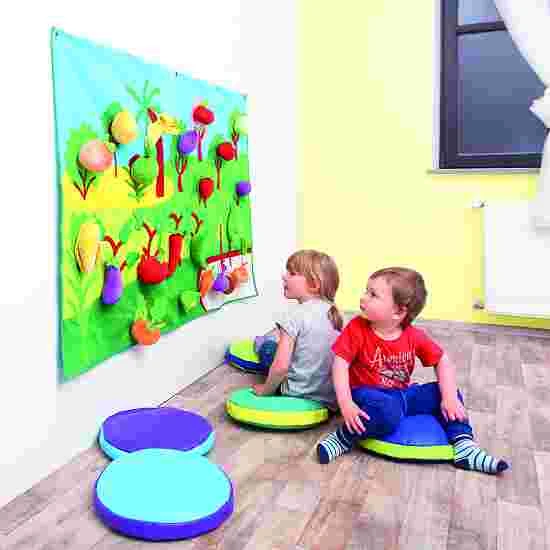 Children love to sit on these beanbag seats: the colourful pads are filled with granulate and ensure comfort. The cover is made of hard-wearing artificial leather (100% polychloride). After use, the beanbag cushions can be easily cleaned and disinfected.