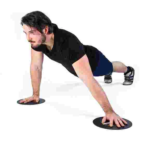 The Sport-Thieme flow slide pads can be used both on hard floors and carpet because each side has a different surface material: one is made from felt, and the other from plastic. The closed-cell material is damp-resistant. The different layers of material allow for even movements.