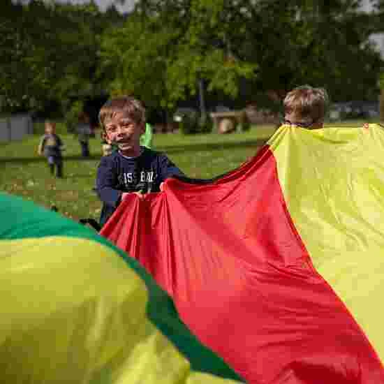 The Sport-Thieme “Standard” parachute can be used in a variety of activities for all ages. The gym parachute is nice and soft. It can be grabbed and held onto by the cloth but of course the attached handles provide a more secure hold during games. The hole in the middle of the parachute allows air to escape, making it easier to move the parachute up and down. A handy pack sack makes for easy transportation and storage.